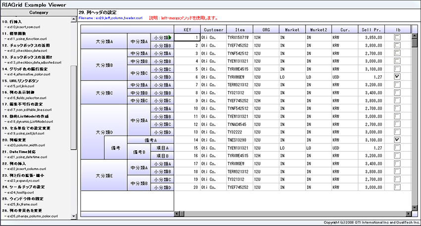 段数が無制御の多段ヘッダやセル結合を利用して、グループ単位に見やすくデータ区分けして表示することが可能です。