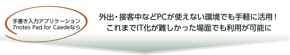「7notes Pad for Caede」は、キーボードに不慣れなお客様に、ストレスのない手書きによる日本語入力を実現するCaede専用アプリケーションです。