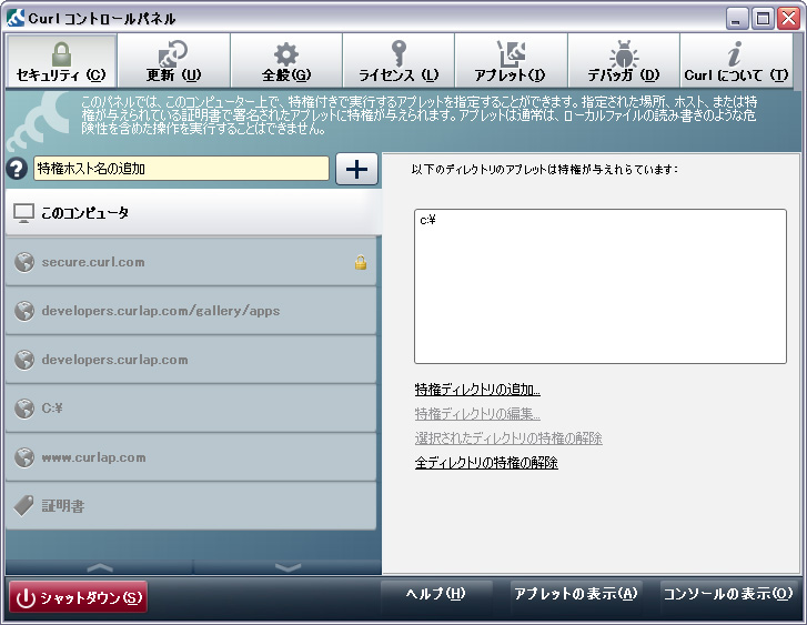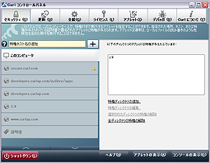 基本的にエンドユーザは詳しいセキュリティの知識がなくても、安全にCurlのアプリケーションを実行することができます。Curl RTEの初期状態では、最大レベルのセキュリティを提供しているため、いかなるアプリケーションを起動した場合においても、ユーザが不利益をこうむったり、クライアントのPCに危害が及んだりするようなことはありません。