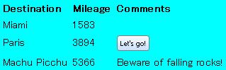 {row-prototype font-weight="bold", "Destination", "Mileage", "Comments"},