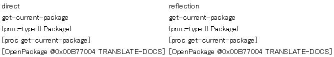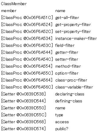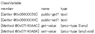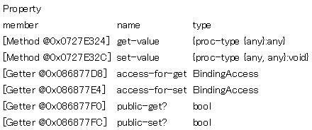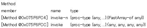 | 直接 : | let v = {o.f ...} | | リフレクション : | let v = {m.invoke-n o, ...} let a = {m.invoke o, ...} |