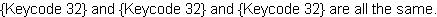 and {Keycode 32} are all the same.