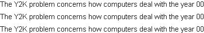 {format "The %2!s! concerns how computers deal with the year %1!02d!", 0, "Y2K problem"}