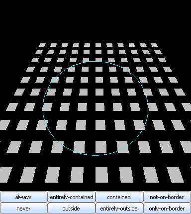 {import * from CURL.GRAPHICS.SCENE} {import * from CURL.PGUIDE.SCENEUTILS, location = "../../default/support/SceneUtils.scurl"} {define-class public BoundarySceneGraphic {inherits SceneGraphic} field public circle:Circle field public intersection-style:IntersectionStyle = IntersectionStyle.contained {constructor public {default scene:Scene, circle:Circle, ...} {construct-super scene, ... } set self.circle = circle } {method public {handle-motion button-pressed:int, dx:Distance, dy:Distance}:void {if button-pressed == 1 then let (sx:double, sy:double, sz:double) = {self.circle.transformation.to-world-scale} let s:double = 20 / {max sx, sy, sz} {self.circle.translate dx*s, -dy*s, 0m} elseif button-pressed == 3 then let s:float = (1 + dx/1in) asa float {self.circle.scale s, s, s} } {for obj:SceneObject in self.scene.objects do {if (obj isa Quad) then set (obj asa Quad).fill-pattern = {FillPattern.get-silver} } } {self.scene.handle-event {BoundarySceneEvent {self.circle.transformed-center}, {self.circle.transformed-radius}, self.intersection-style} } {self.update-drawable} } {method public {reset-quads}:void {for obj:SceneObject in self.scene.objects do {if (obj isa Quad) then set (obj asa Quad).fill-pattern = {FillPattern.get-silver} } } {self.update-drawable} } } {define-proc {make-command-button label:String, bsg:BoundarySceneGraphic, intstyle:IntersectionStyle, circle:Circle, scene:Scene}:CommandButton let button:CommandButton = {CommandButton label=label, width = 1in, {on Action do {bsg.reset-quads} set bsg.intersection-style = intstyle {scene.handle-event {BoundarySceneEvent {circle.transformed-center}, {circle.transformed-radius}, intstyle} } } } {return button} } {define-class public BoundarySceneEvent {inherits SphereIntersectionSceneEvent} {constructor public {default center:Distance3d, radius:Distance, intersection-style:IntersectionStyle, ...} {construct-super center, radius, intersection-style = intersection-style, predicate = Predicate.all, sort-order = SortOrder.none, ... } } } {define-class public Circle {inherits SceneObject} field public center:Distance3d = {Distance3d 0m, 0m, 0m} field public radius:Distance field public color:Color = {Palette.get-cyan} {method public {paint renderer:Renderer3d, viewport-width:Distance, viewport-height:Distance}:void let center:Distance3d = self.center let radius:Distance = self.radius {renderer.render-elliptic-path center.x - radius, center.y - radius, 0m, radius * 2, radius * 2, texture=self.color, line-width = 1.5pt} } {method public {get-local-bounding-box check-visibility?:bool = false }:(min-xyz:Distance3d, max-xyz:Distance3d, valid-bounds?:bool) let center:Distance3d = self.center let radius:Distance = self.radius let a:Distance3d = {Distance3d center.x - radius, center.y - radius, 0m} let b:Distance3d = {Distance3d center.x + radius, center.y + radius, 0m} {return a, b, not check-visibility? or self.bounding-box-or-object-visible?} } {constructor public {default center:Distance3d, radius:Distance, ...} {construct-super ... } set self.center = center set self.radius = radius } {method public {transformed-center}:Distance3d {return {self.world-transformation.point-to-world self.center}} } {method public {transformed-radius}:Distance let (sx:double, sy:double, sz:double) = {self.world-transformation.to-world-scale} {return self.radius * {max sx, sy, sz}} } } {value let scene:ExampleScene = {ExampleScene} set scene.camera-position = {Distance3d 0in, -3ft, 5ft} {scene.camera-setup} let circle:Circle = {Circle {Distance3d 0m, 0m, 0m}, 3.1ft } {scene.add-object circle} let bsg:BoundarySceneGraphic = {BoundarySceneGraphic scene, circle, width=4in, height=4in, background = {FillPattern.get-black} } let eh:EventHandler = {on e:BoundarySceneEvent at obj:Quad do set obj.fill-pattern = {FillPattern.get-yellow} {bsg.update-drawable} } let quad:#Quad {for x:Distance = -5ft to 5ft step 1ft do {for y:Distance = -5ft to 5ft step 1ft do set quad = {Quad 0ft, 0ft, 6in, 6in, fill-pattern = {FillPattern.get-silver}, eh } {quad.translate x, y, 0m} {scene.add-object {non-null quad}} } } {VBox bsg, {HBox {make-command-button "always", bsg, IntersectionStyle.always, circle, scene}, {make-command-button "entirely-contained", bsg, IntersectionStyle.entirely-contained, circle, scene}, {make-command-button "contained", bsg, IntersectionStyle.contained, circle, scene}, {make-command-button "not-on-border", bsg, IntersectionStyle.not-on-border, circle, scene} }, {HBox {make-command-button "never", bsg, IntersectionStyle.never, circle, scene}, {make-command-button "outside", bsg, IntersectionStyle.outside, circle, scene}, {make-command-button "entirely-outside", bsg, IntersectionStyle.entirely-outside, circle, scene}, {make-command-button "only-on-border", bsg, IntersectionStyle.only-on-border, circle, scene} }}} |